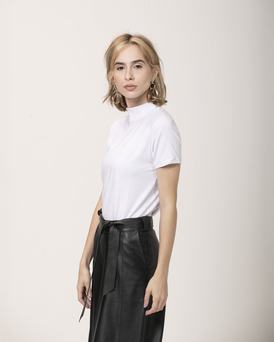 Camiseta Gola Alta Tecnológica Modal Feminina Branco