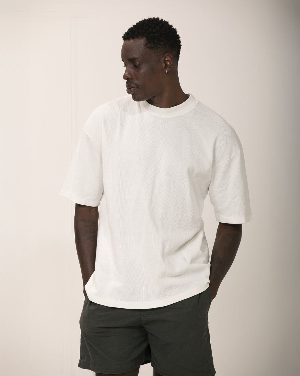 - Modelagem oversized, camiseta bem estruturada.